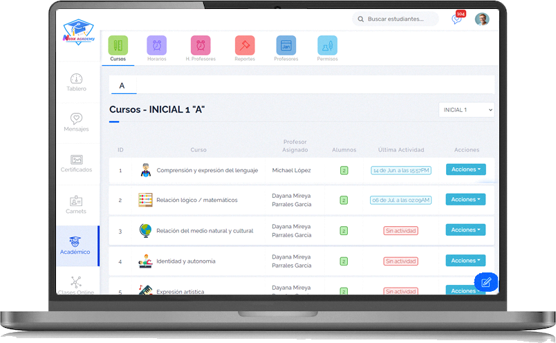 Neox Academy es un sistema integral que facilita la gestión de funciones administrativas y procesos académicos.