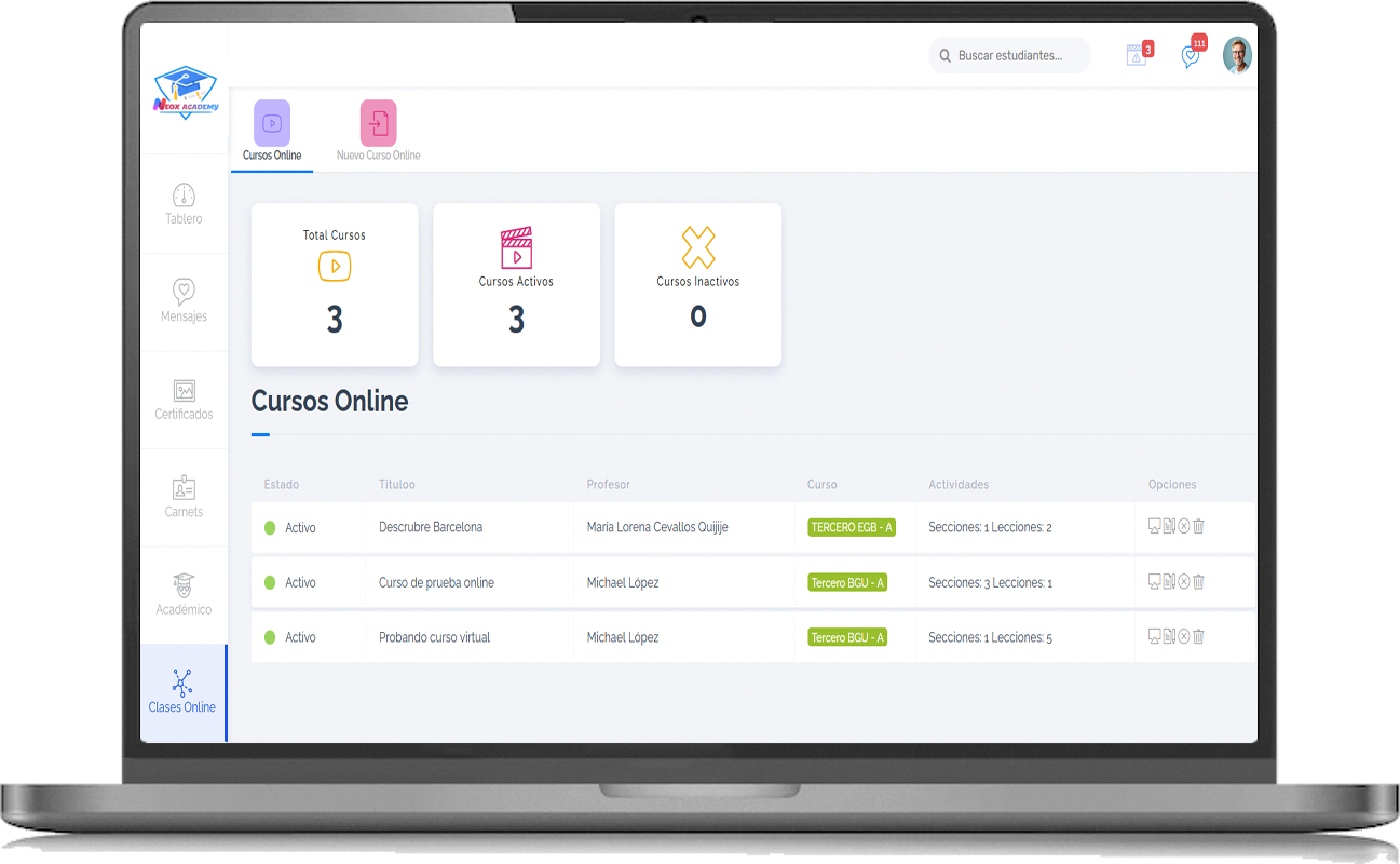 Agrega cursos, asigna profesores y estudiantes y comienza ya tus actividades académicas.